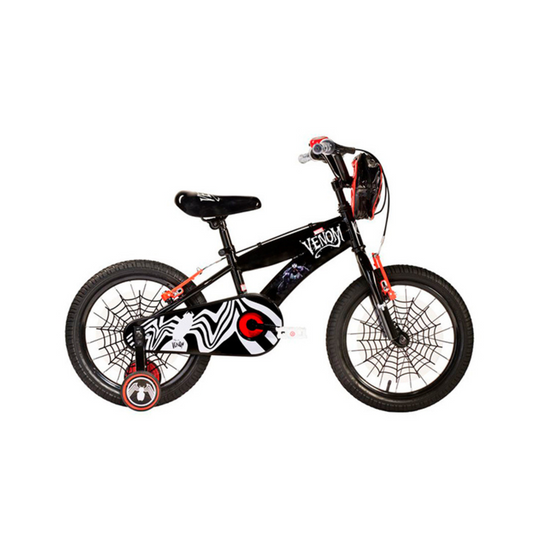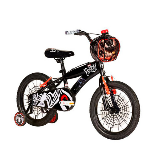 Bicicleta infantil Venom Aro 16. La apuesta perfecta inspirada en el personaje de Marvel. Estructura sólida basada en acero y una composición amigable para una entretención en grande y sobre ruedas.