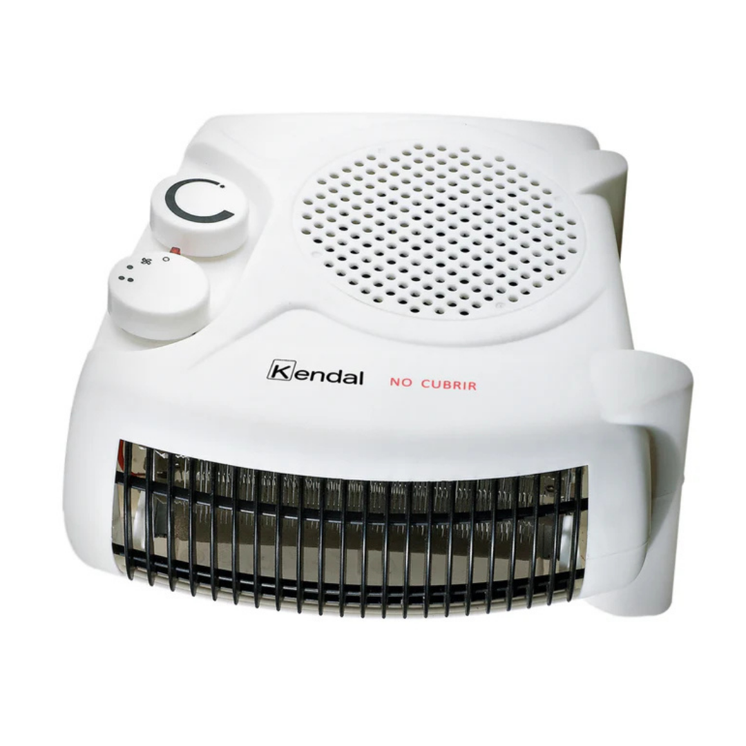 Termoventilador FH-106 de Kendal. que puede ser utilizado en casa o departamento. con un termostato regulable y una potencia de 2000 watts.