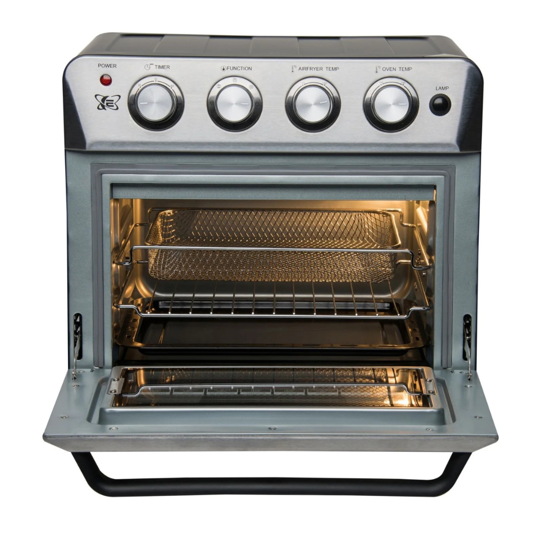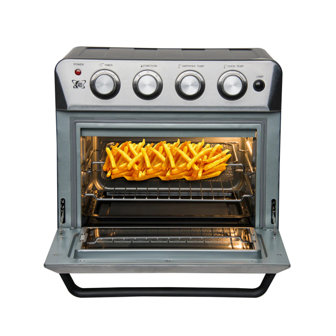 Horno, freidora de aire y tostador todo en uno. Este horno Electrón tiene una freidora de aire incorporada, es un 4 en 1; para que puedas preparar alimentos saludables, crujientes -con todas sus propiedades nutritivas- como también al que podrás usar para Hornear, Rostizar, Deshidratar y Asar.