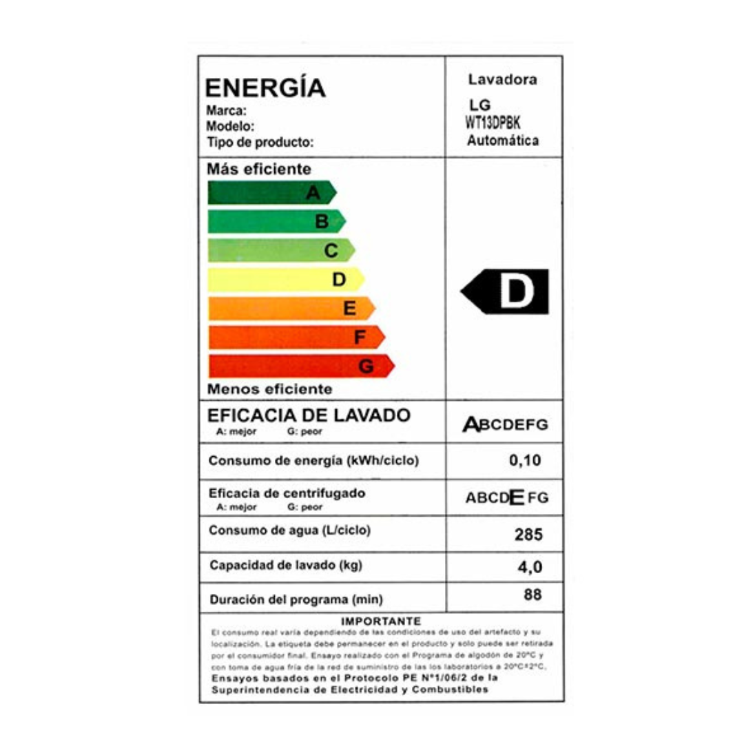 - Rango Capacidad Lavado: 13 Kg a 15 Kg