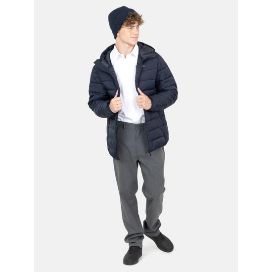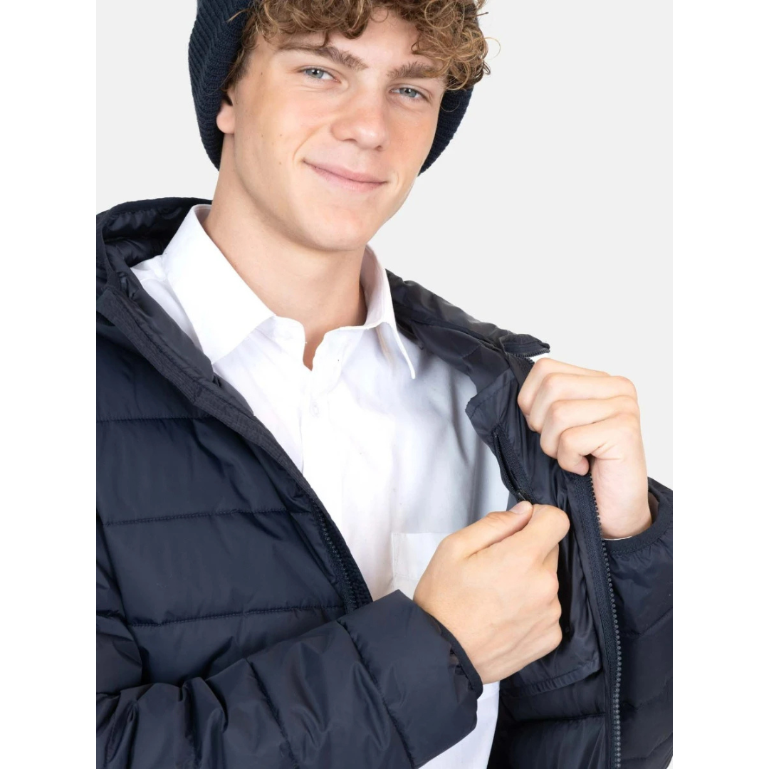 Esta parka escolar fabricada completamente en nylon es ideal para proteger del frío y la lluvia. Ofrece resistencia y durabilidad para el uso diario en la escuela.