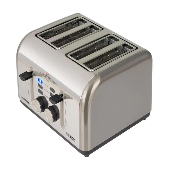 Prepara deliciosos desayunos para tu familia con este moderno tostador de pan de nuestra línea Professional Line. Con cuerpo de acero inoxidable, 4 ranuras anchas auto centrables, 2 Controles independientes, 7 niveles de tostado que permiten poner el tipo de pan que más te gusta. Además, posee funciones para descongelar, recalentar y cancelar el ciclo de tostado. Y se apaga automáticamente!